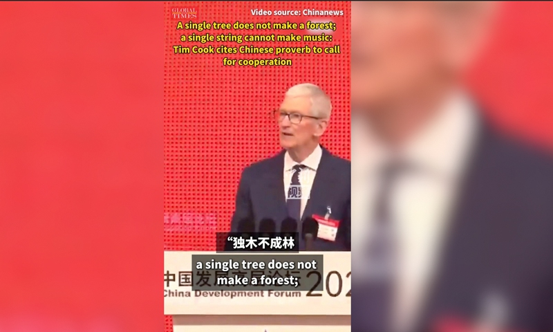 Apple CEO Tim Cook spoke at the 2026 China Development Forum in Beijing and urged greater cooperation between companies and countries, citing a Chinese proverb to emphasize collective effort. The remarks are constructive for US-China business relations but are rhetorical in nature and unlikely to move Apple’s financials or broader markets materially.